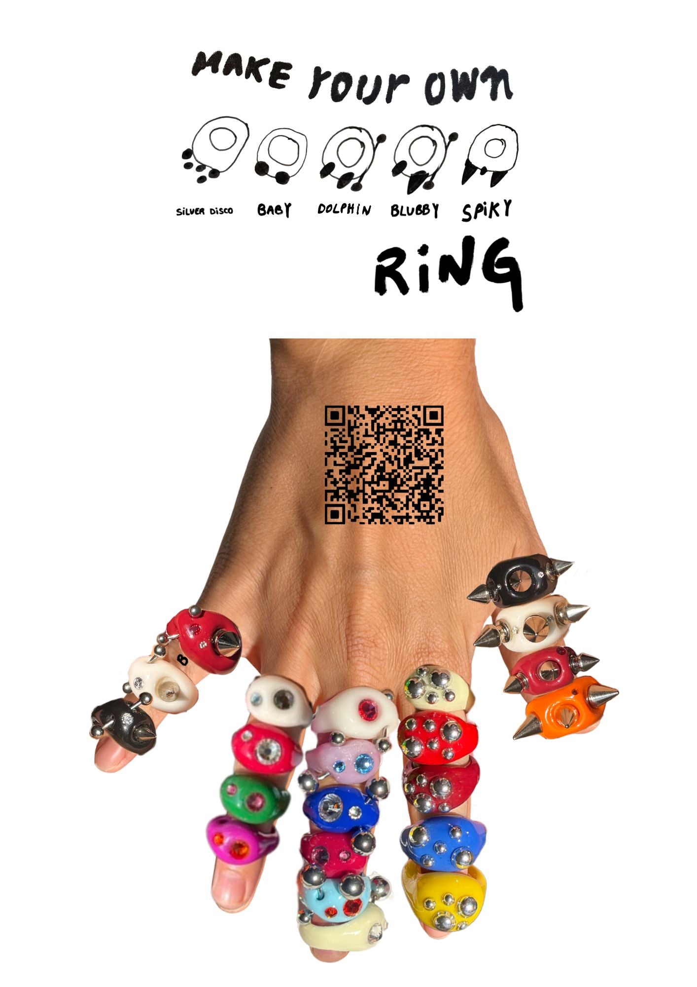 Five shapes born in the atelier: Baby, Silver Disco, Dolphin, Blubby, Spiky to shape and make one’s own. Each ring is handcrafted in Paris.