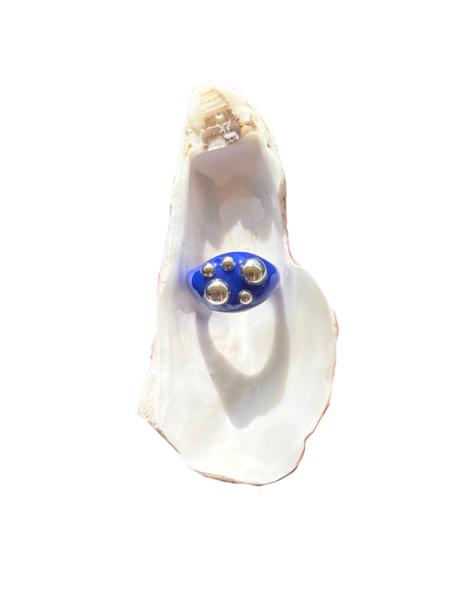 Tiny quantity ✶ Bague colorée, éclat de céramique argentée. Pièce unique façonnée à la main ★ Clay, résine et trésors upcyclés.