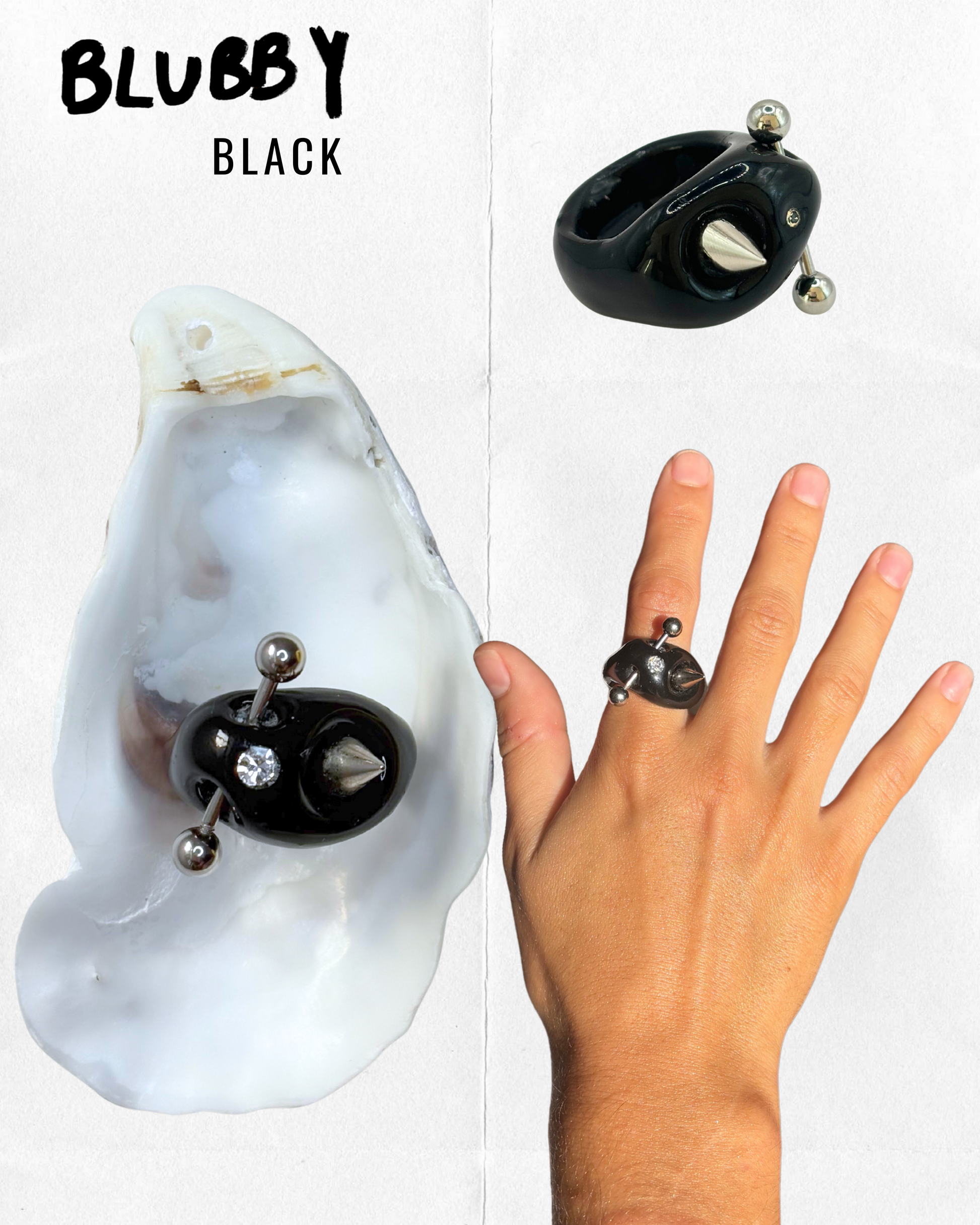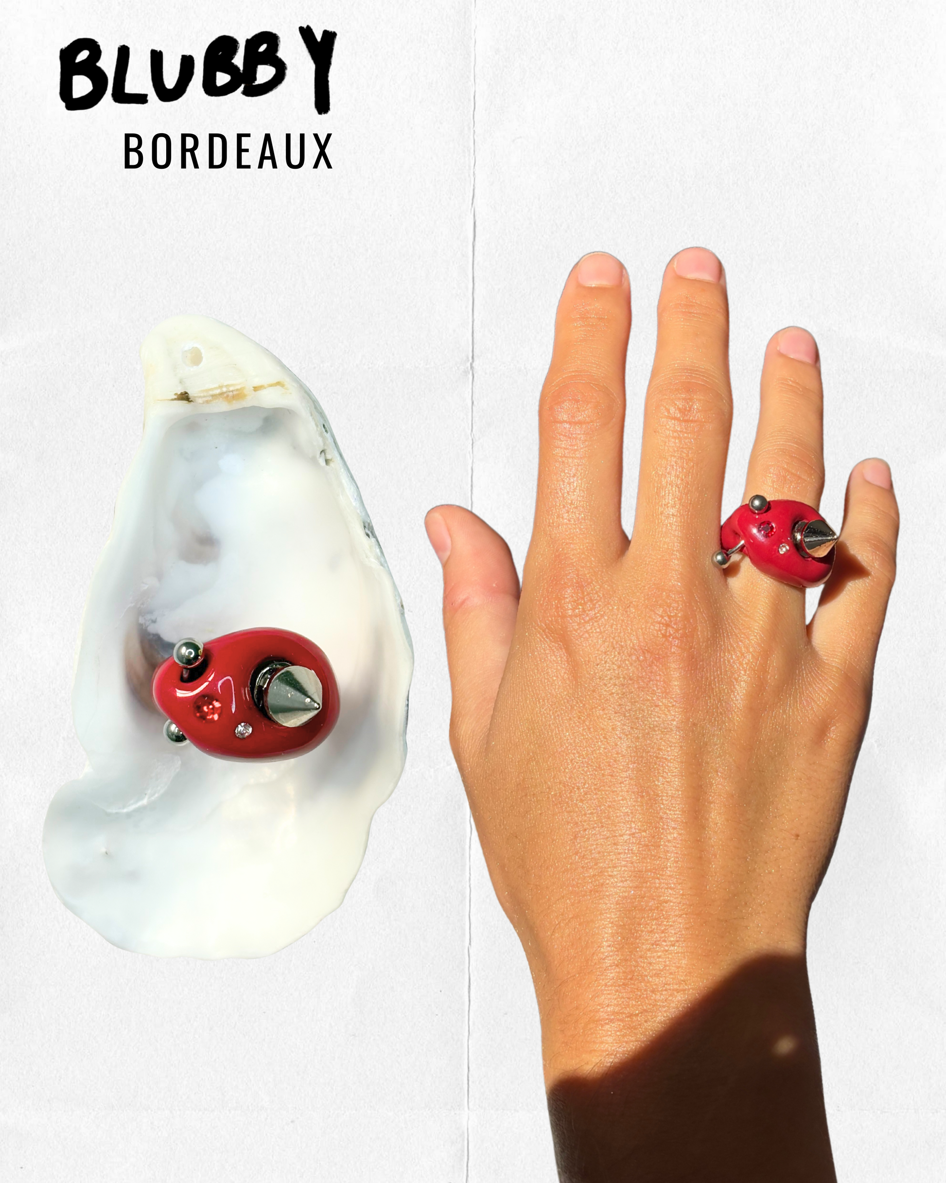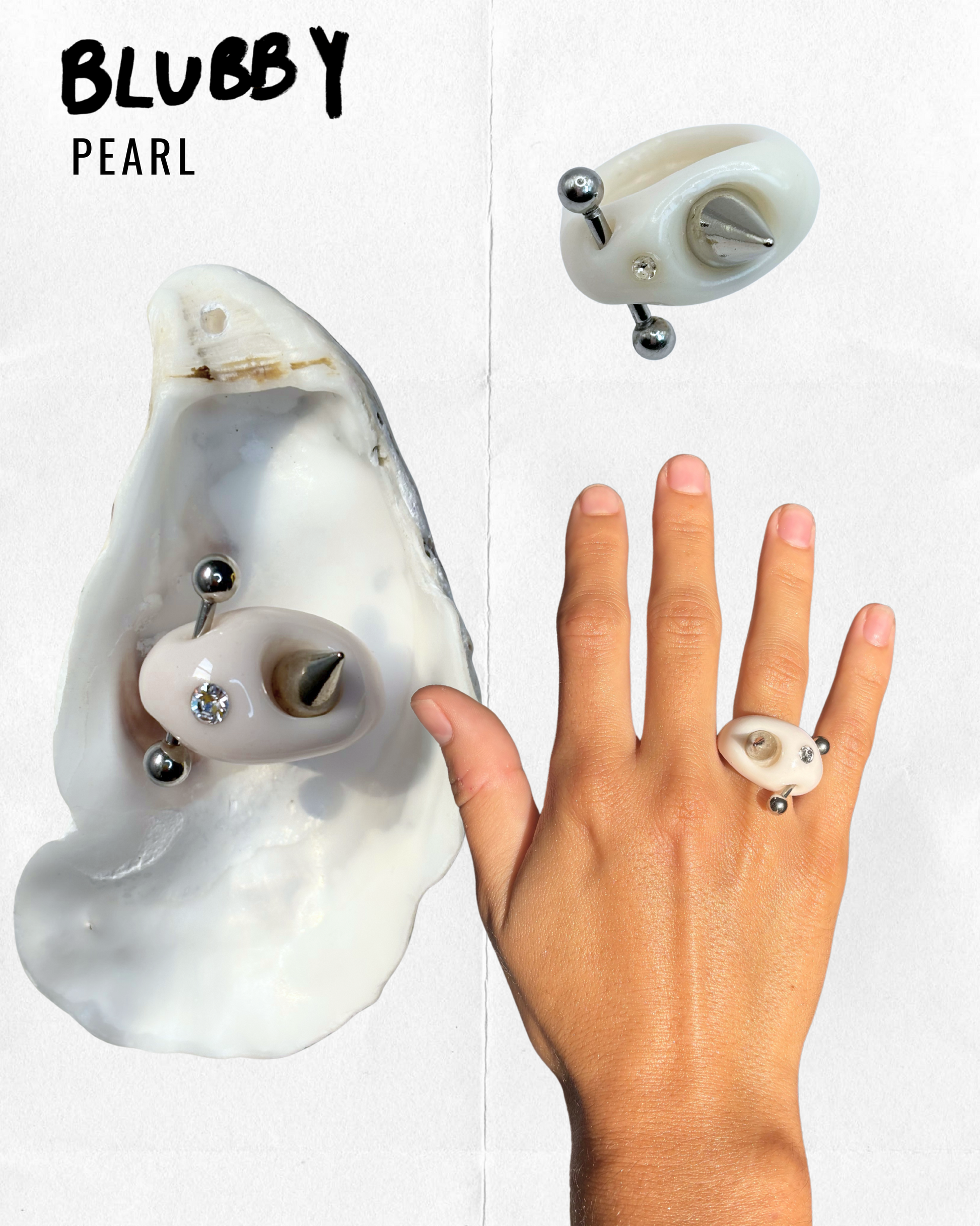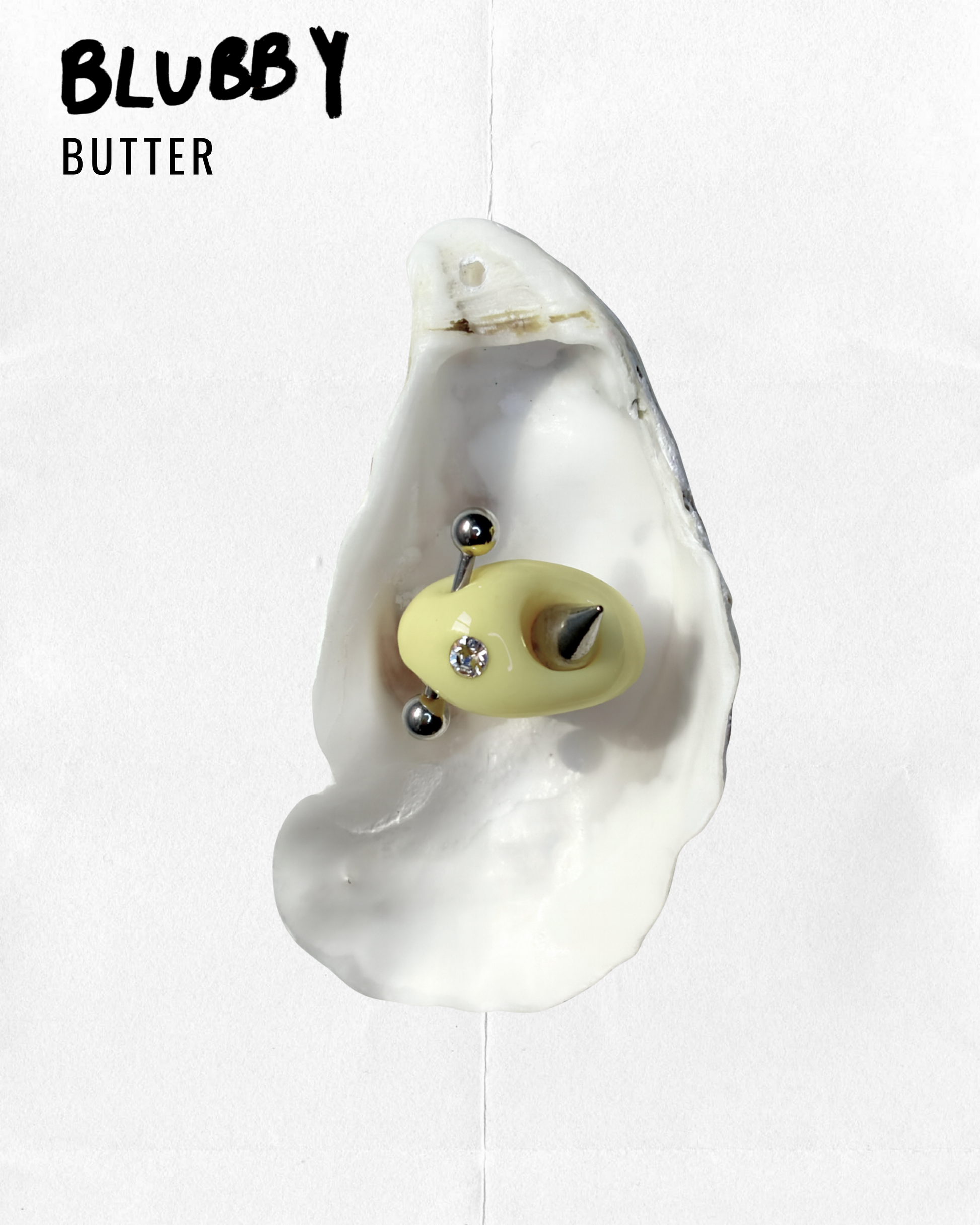 Hand-sculpted in clay, resin & upcycled materials (crystals + piercing)
