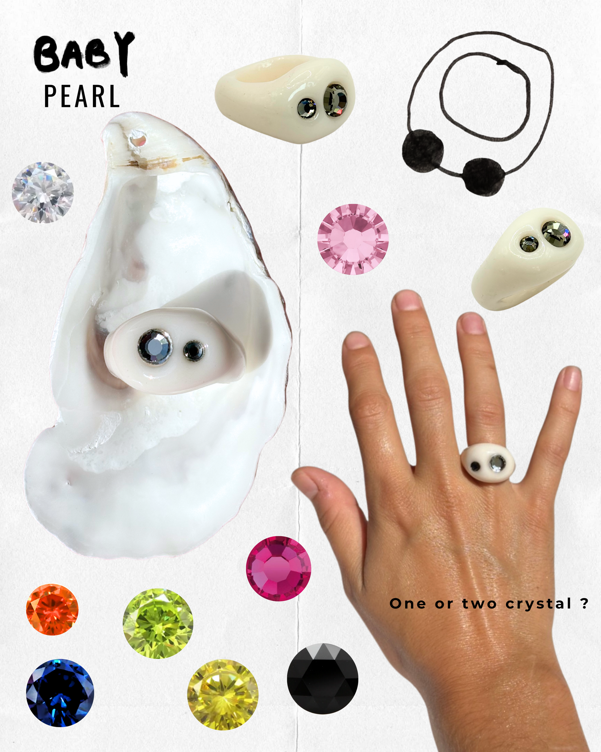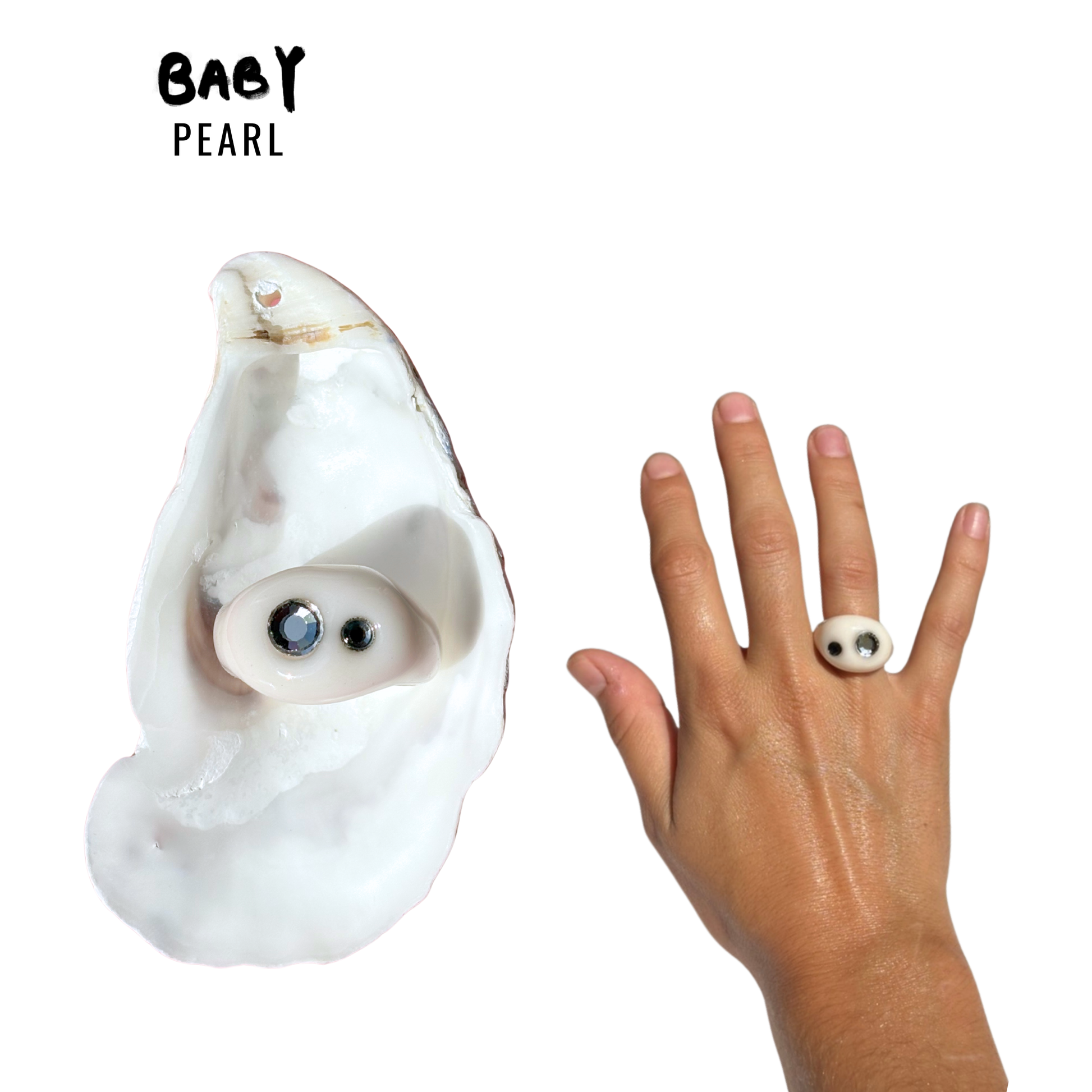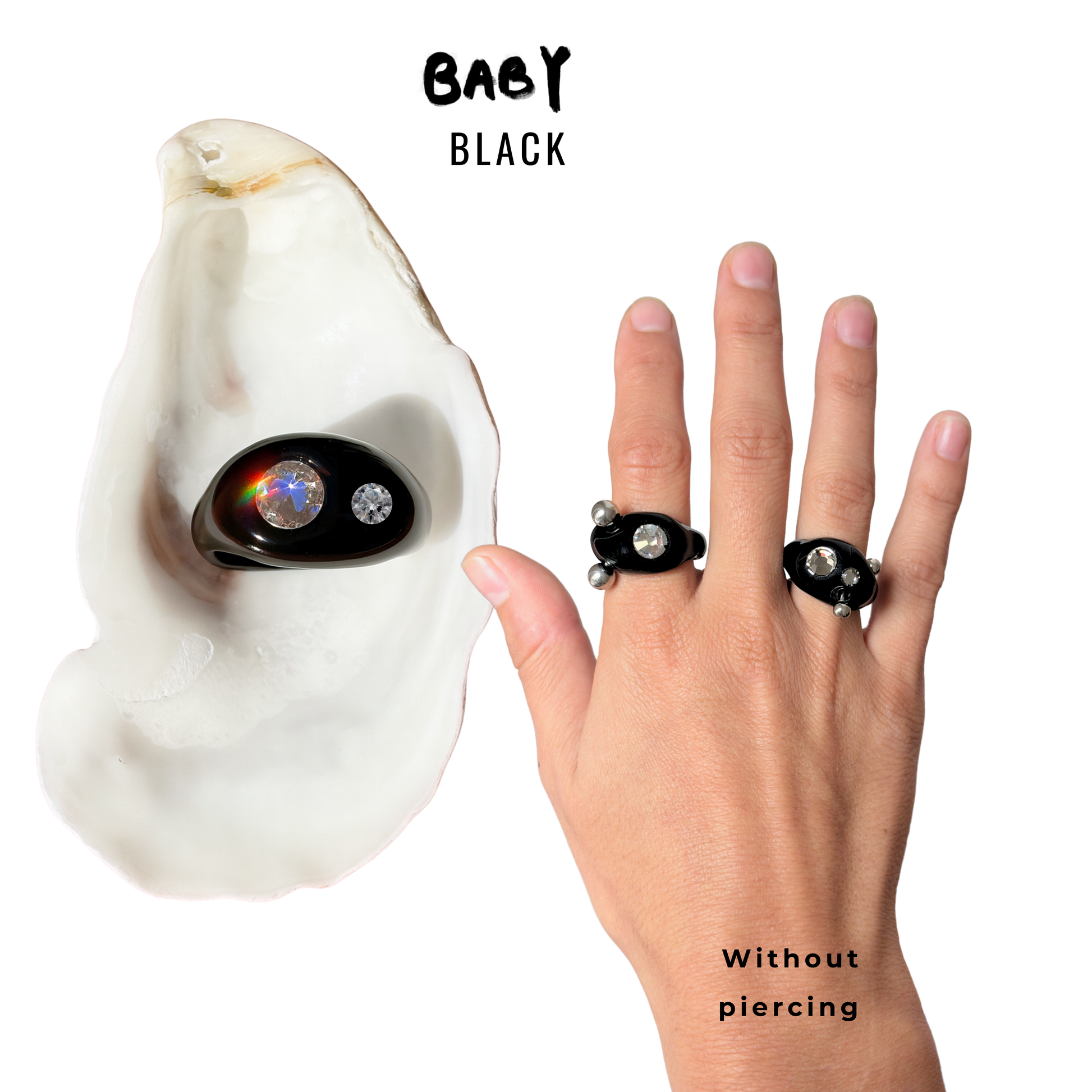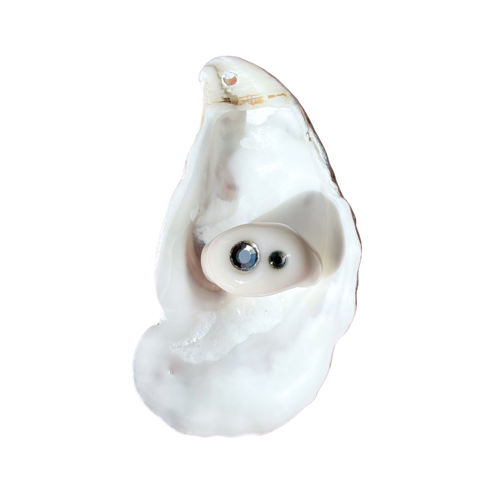 Hand-sculpted in clay, resin & upcycled materials (crystals + piercing)