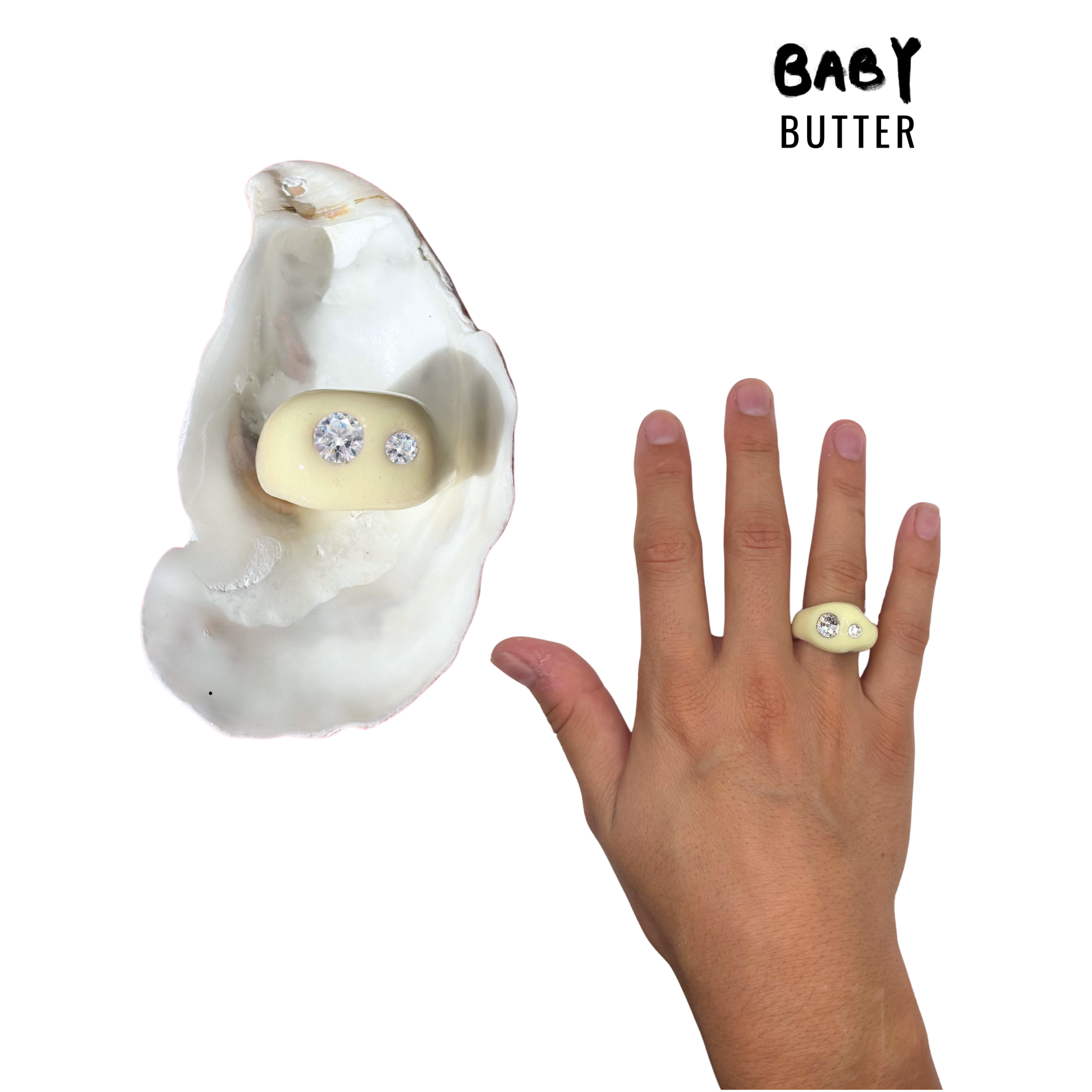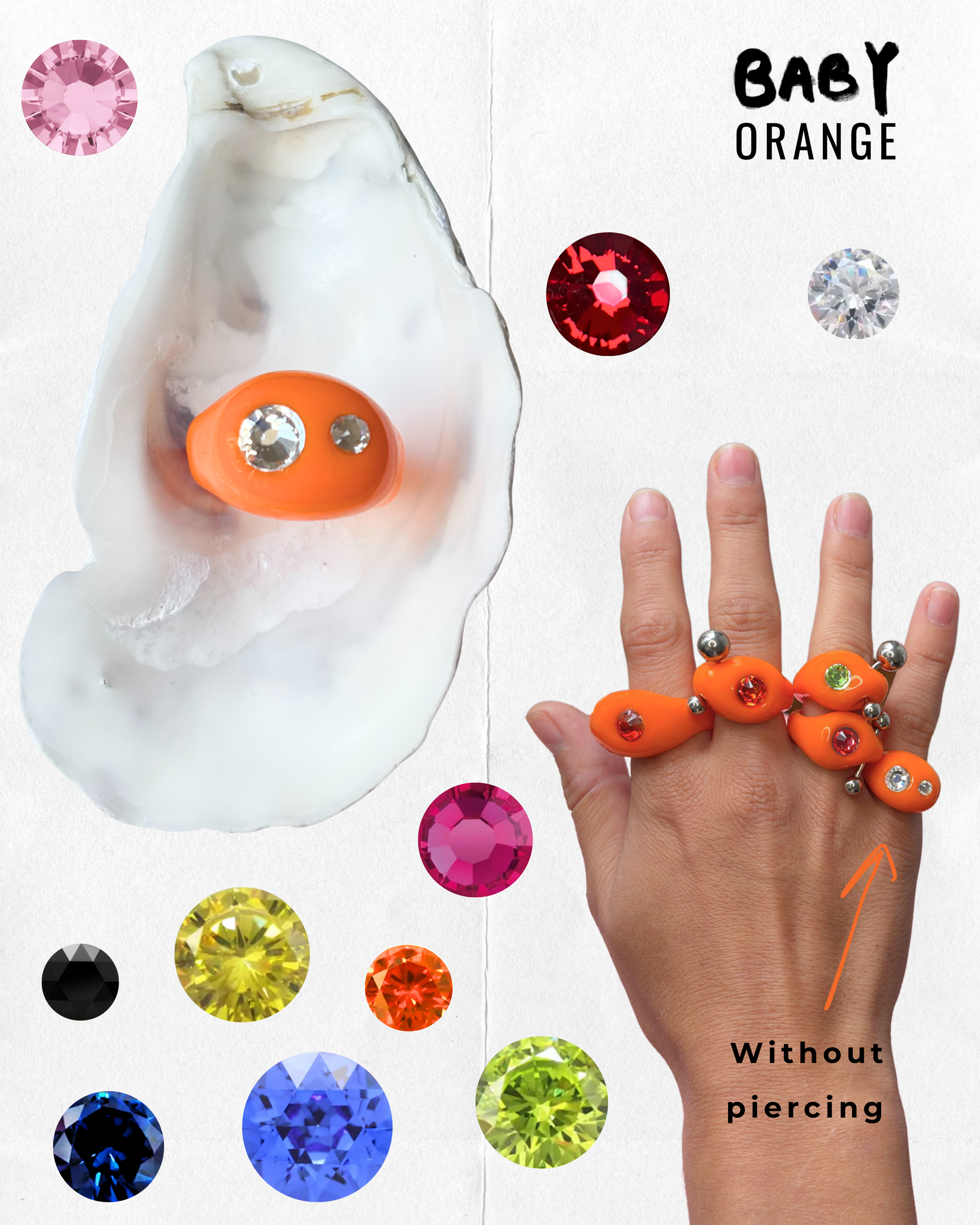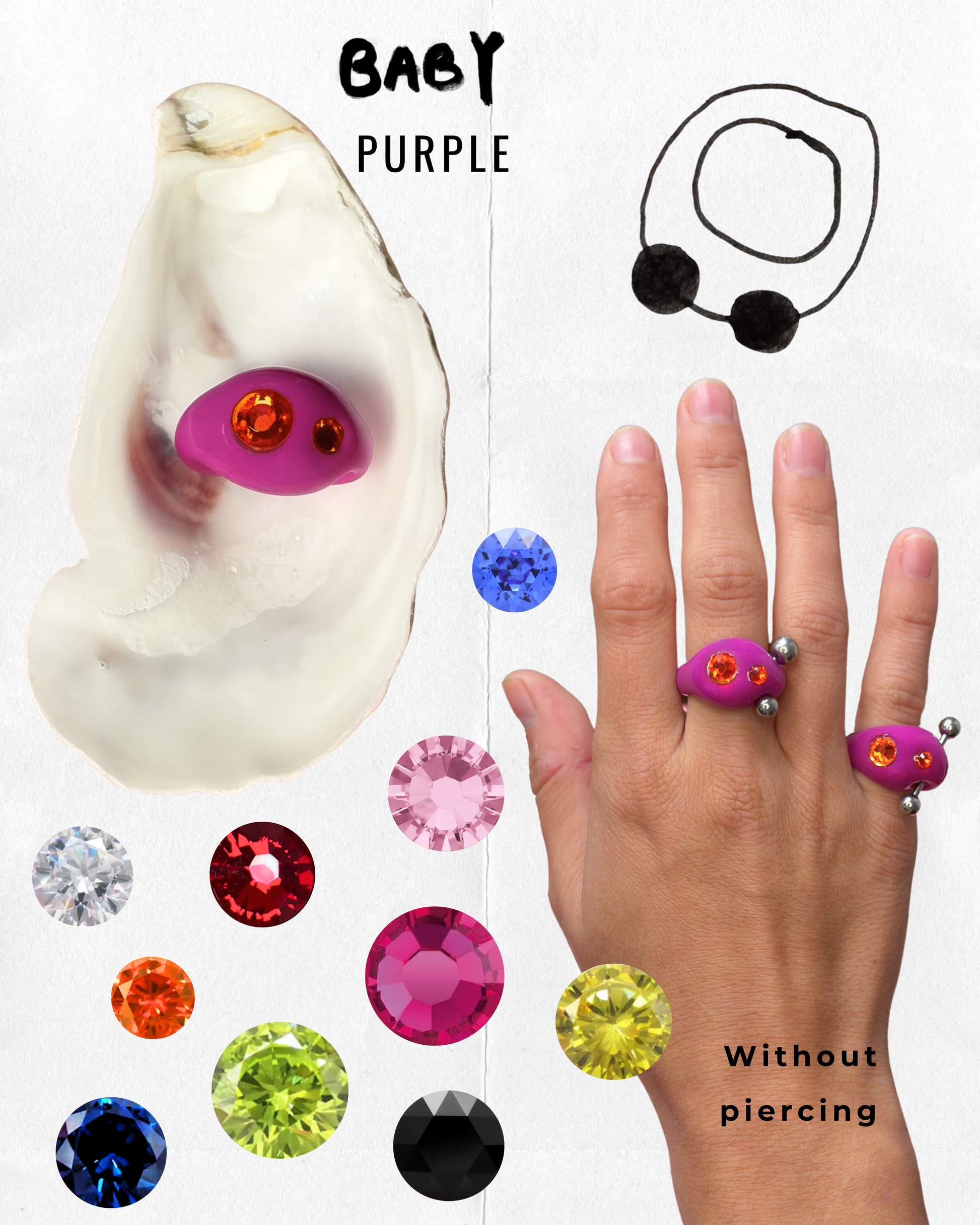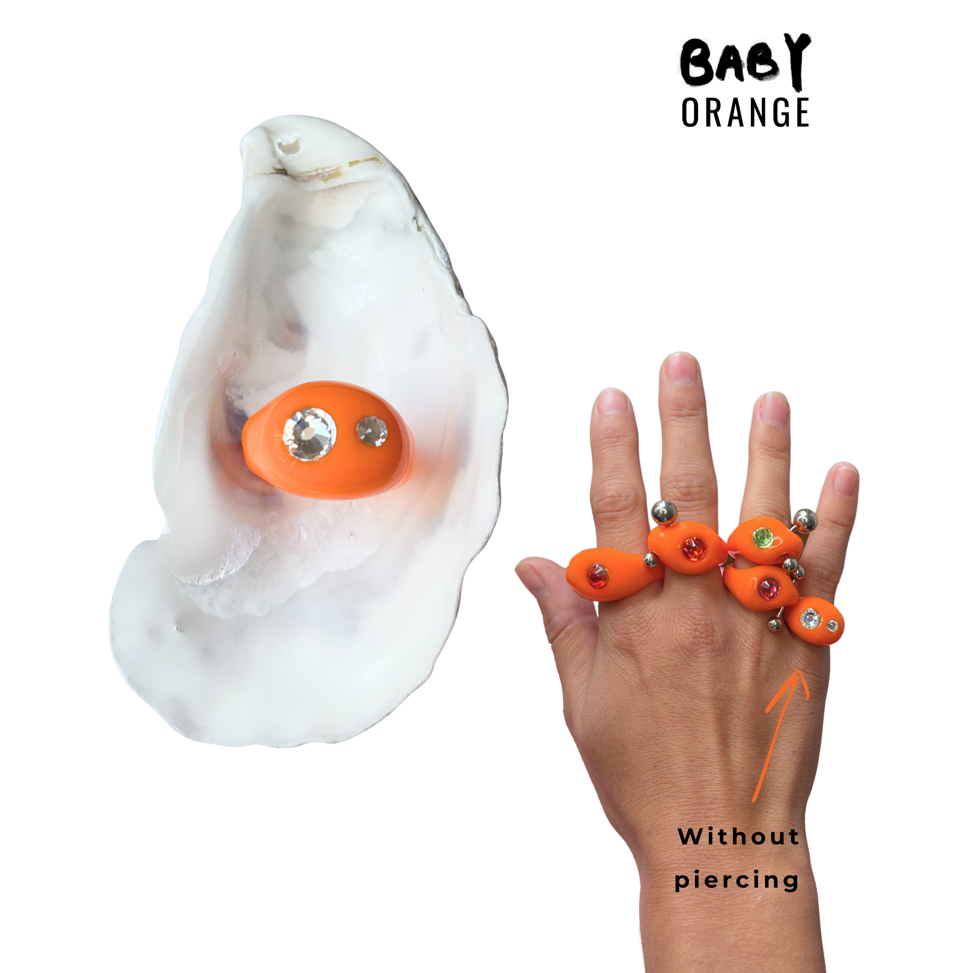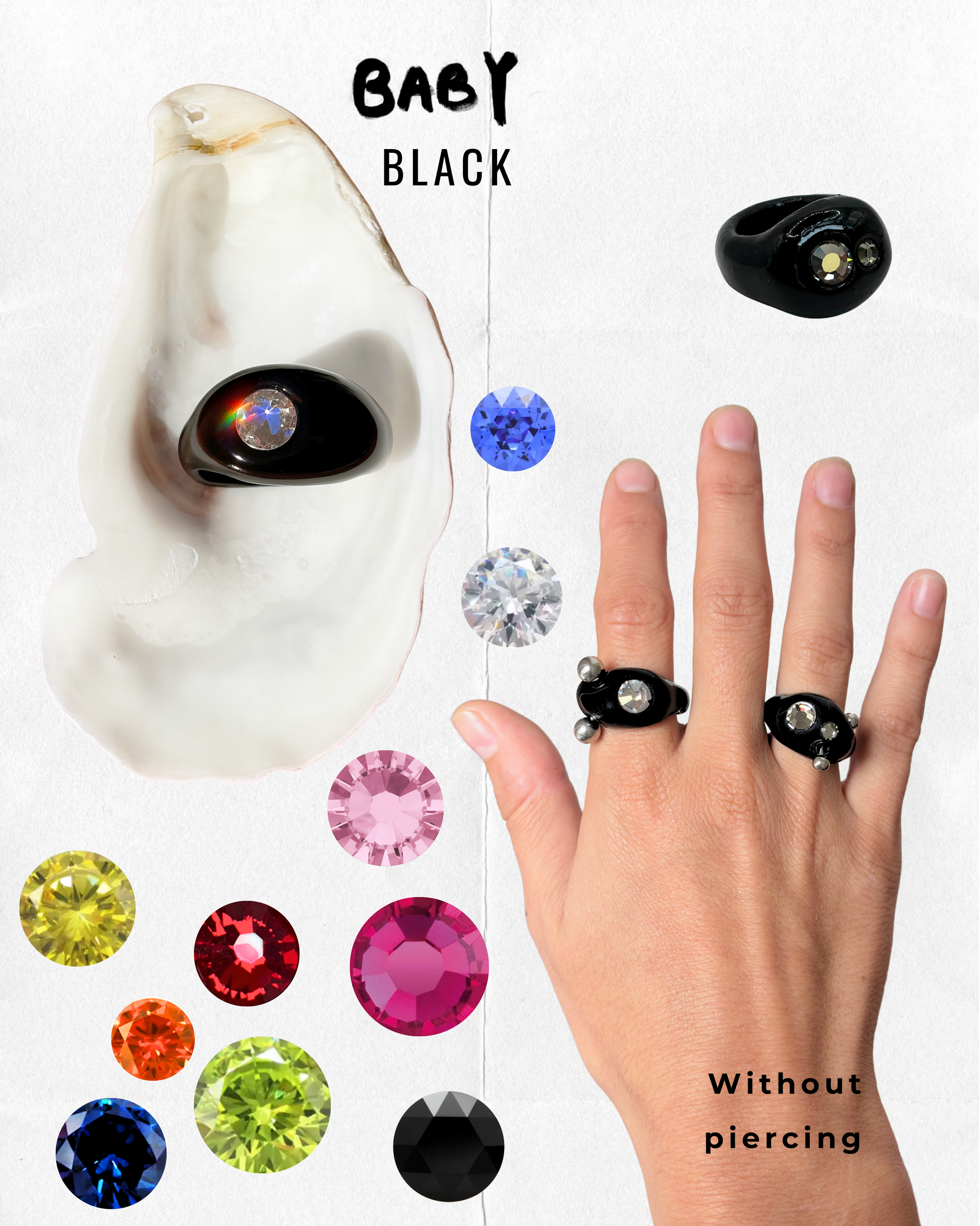 Hand-sculpted in clay, resin & upcycled materials (crystals + piercing)