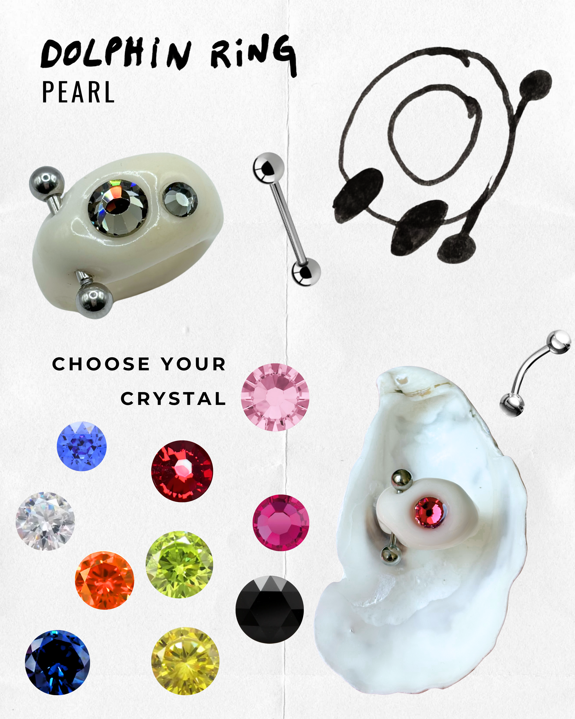 One-of-a-kind piece handmade in Paris ✶ Available for pre-order ✶ production time 2 to 4 weeks depending on demand. ✶ Made from clay, resin, and upcycled piercing parts / crystals. ✶ Each ring is slightly unique — we’ll choose the piercing that best complements its shape, just for you.