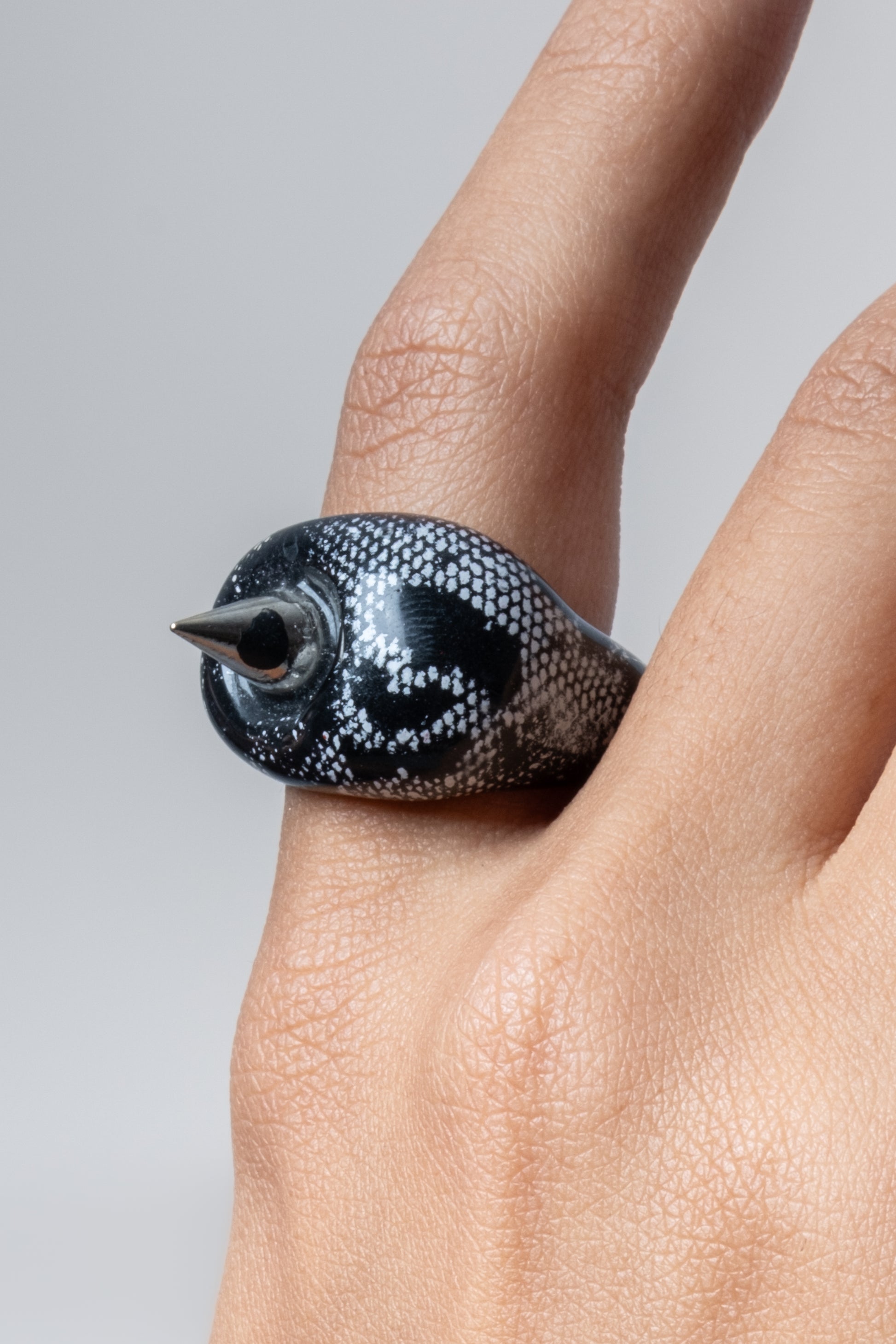 Ultra tiny quantity ★ Collaboration with the talented Kenza Iatrides who spraypainted one of her signature prints on our rings. One-of-a-kind piece handmade in Paris ★ from clay, resin and recycled treasures. A blend of passion, burlesque and proudly assumed imperfections.